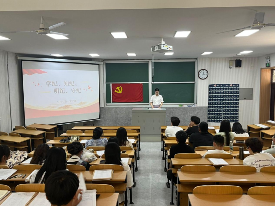 本科生第一党支部书记颜冲以“学纪、知纪、明纪、守纪”为主题,围绕习近平总书记重要讲话指示、党纪建设历程,结合生动实例为本科生党员作讲解,激励全体党员深入领会开展党纪学习教育的必要性,推动党纪学习教育走深走实。