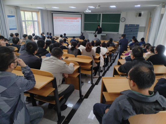 党委书记于健在物理楼二阶一教室以《深入贯彻中央八项规定精神学习教育,持之以恒抓好“四风”建设》为题,为全体教师和党员讲授专题党课。此次党课旨在引导全体教师和党员深刻认识作风建设的重要性,积极践行中央八项规定精神,为学院发展营造风清气正的环境。