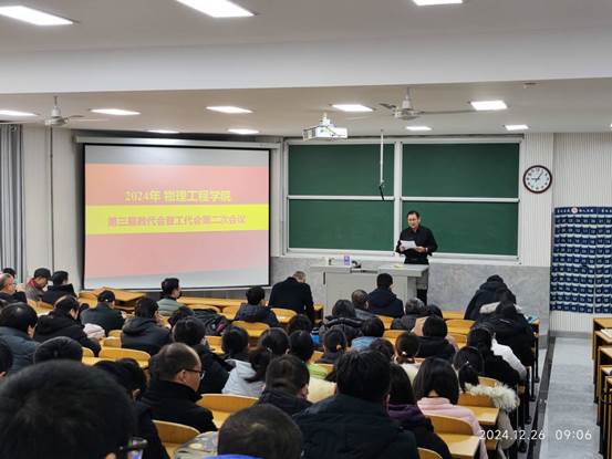 第三届教职工代表大会暨第三届工会会员代表大会第二次会议在物理楼2阶1隆重召开。学院党政领导、全体教职工代表及工会会员代表参加了会议。会议由学院党委书记于健主持。