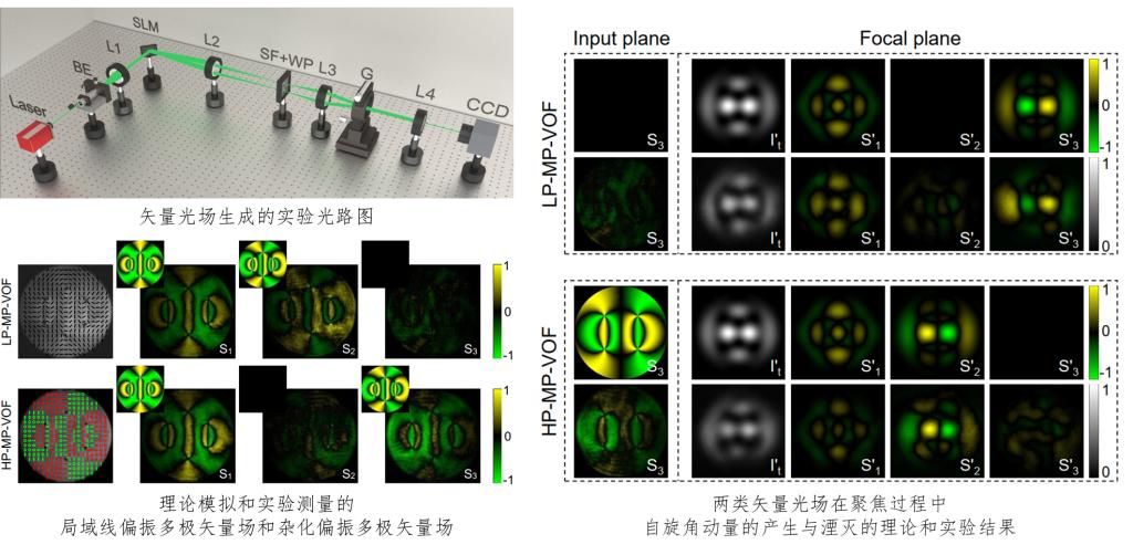 矢量光场作为一种偏振沿空间变化的新型光场,其展现出的优良性质并广泛应用于光通讯、光学成像、量子光学、光学加工、光学操纵、光与物质的相互作用等领域。本工作提出新型多极矢量光场,根据偏振态可分为局域线偏振多极矢量场和杂化偏振多极矢量场。在弱聚焦的过程中,局域线偏振多极矢量场和杂化偏振多极矢量场会分别出现自旋角动量的产生和湮灭效应。根据这一现象分析得出相应的理论解释,指出波前中心对称位置的光场相互作用导致了纵向自旋角动量的产生或湮灭。此外,在紧聚焦的情况下,其纵向自旋角动量依旧会存在产生和湮灭过程,并且在焦点附近还会出现横向自旋角动量。在不同条件下,在焦面上可以得到纯纵向自旋角动量、纯横向自旋角动量或者二者同时得到。研究结果对光子自旋角动量的聚焦行为提供了新的认识,灵活操纵的自旋角动量为相关应用提供了新的工具。这项工作为在输入平面和焦平面上操纵结构光和自旋角动量开辟了新的途径,可应用于光学加工、光学捕获和光信息传输等领域。