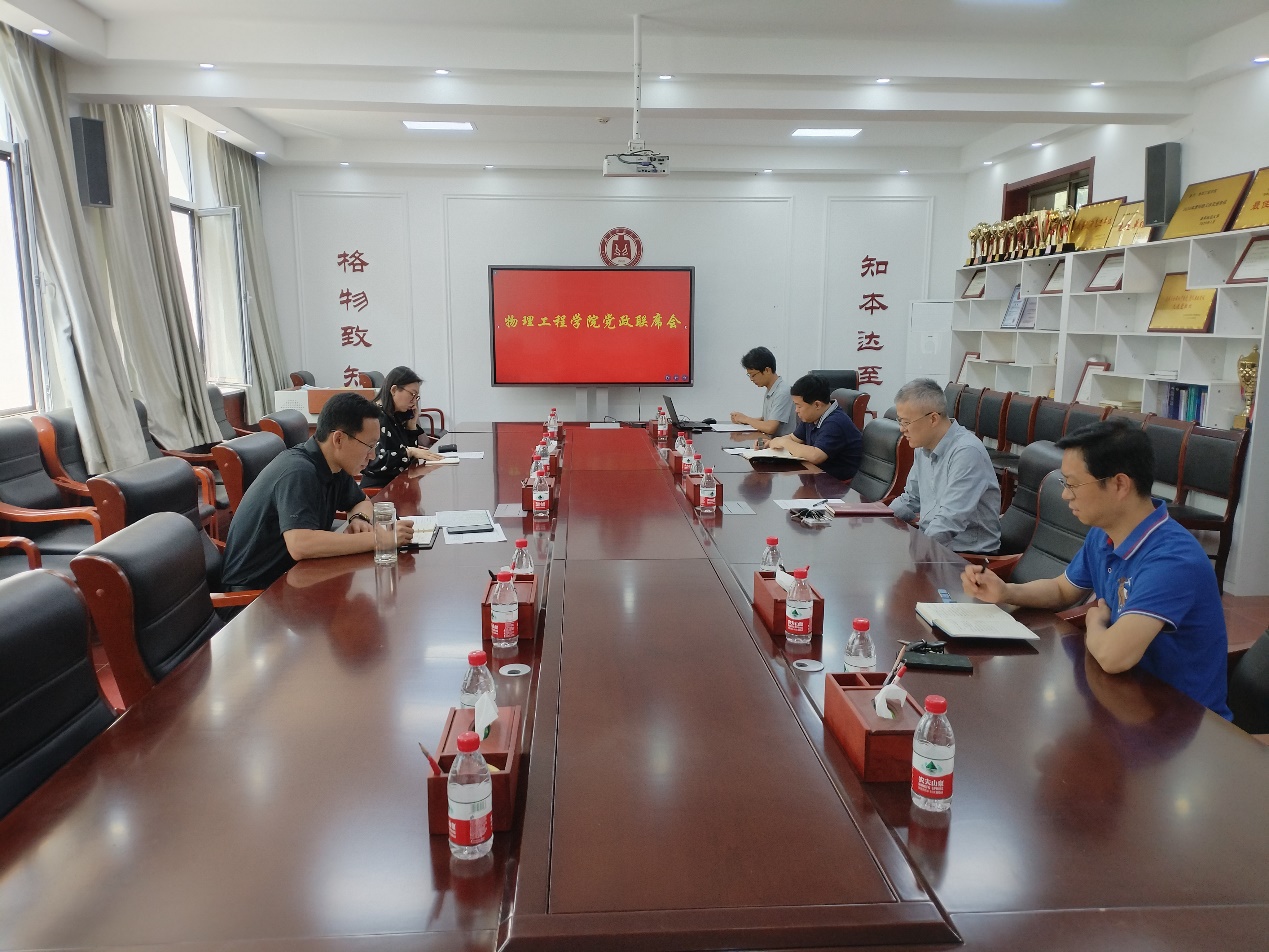 在物理楼225会议室召开党政联席会议,学院领导班子全体成员参加会议。