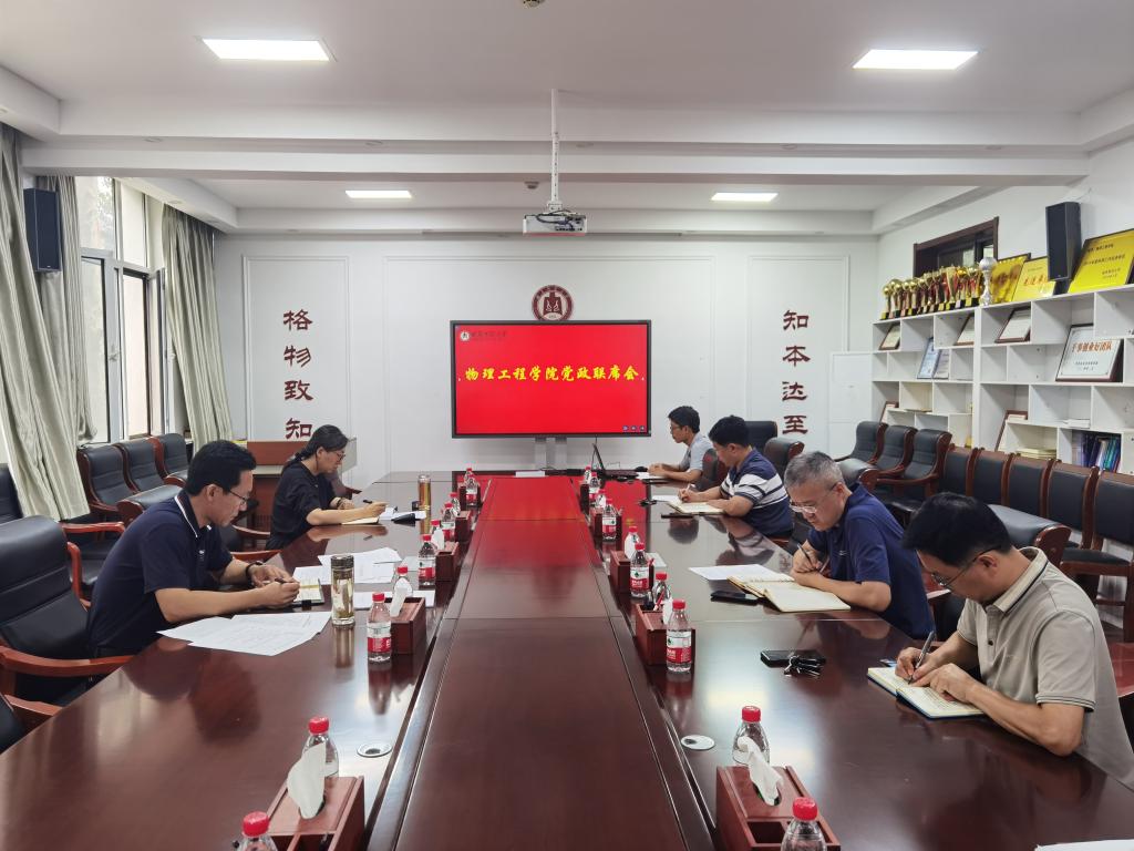 在物理楼225会议室召开党政联席会议,学院领导班子全体成员参加了会议。