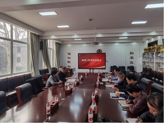 在物理楼225会议室召开党委(扩大)会议,学校党委副书记李志红列席指导。本次会议由党委书记于健主持,学院领导班子全体成员、党委委员、各系主任参加会议。