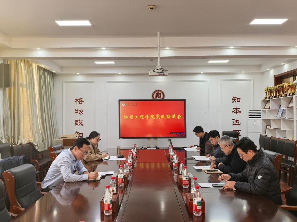 在物理楼225会议室召开党政联席会议,学院领导班子全体成员参加了会议。